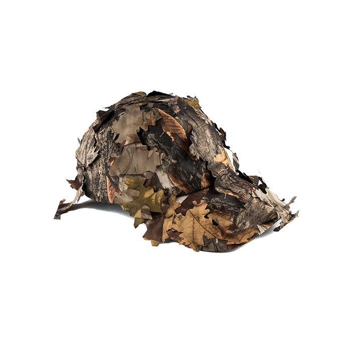 Pălărie de camuflaj robustă, ușoară și confortabilă, cu frunze 3D, realizată din țesătură ușoară cu culori de camuflaj atent selectate. Coloritul este de tip "stejar englezesc", ajutând la integrarea completă în mediul înconjurător. Pălăria este potrivită pentru camuflaj și vânătoare. Dimensiunea sa este universală, reglabilă.