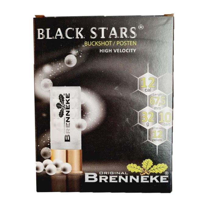 Brenneke's Black Stars 11/0 în calibrul 12/67,5 are o cutie de cartuș transparentă. Greutatea sa este de 32 de grame cu 12 peleți de 7,65 mm. Presiunea maximă a cartușului este de 740 bar.
