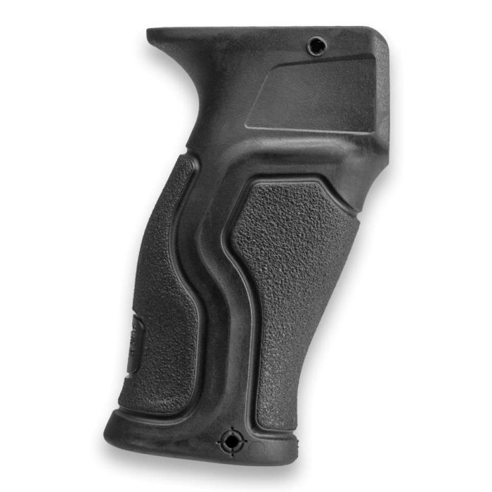 Mânerul cauciucat este proiectat cu un profil de 15 grade și o atenție strictă la ergonomie, pentru o prindere concentrată care permite o sesiune confortabilă pe distanțe lungi sau un antrenament CQB intens.