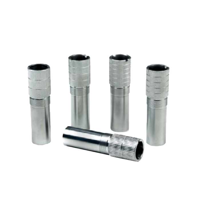 Șoc extern - complet (F) I pentru țevi semiautomate cu țevi netede din seriile CY, NEO și SP peste țevi. Are cea mai mare constricție de șoc, constricția botului devine de 17,25 mm, la 35 de metri concentrează fasciculul aproximativ 65-75% pe țintă. Potrivit pentru gloanțe nu mai mari de 6/0, pentru a evita strivirea gloanțelor mai mari. Nu este de dorit să trageți cu el brennere obișnuite, doar subcalibru. Potrivit pentru vânătoarea de rațe și gâște, fasciculul de bile rămâne concentrat la o distanță mai mare. Avantajul șocului extern este că prelungește lungimea țevii cu 20 mm și poate fi montat și demontat manual, fără a fi nevoie de o cheie de șoc sau o unealtă.