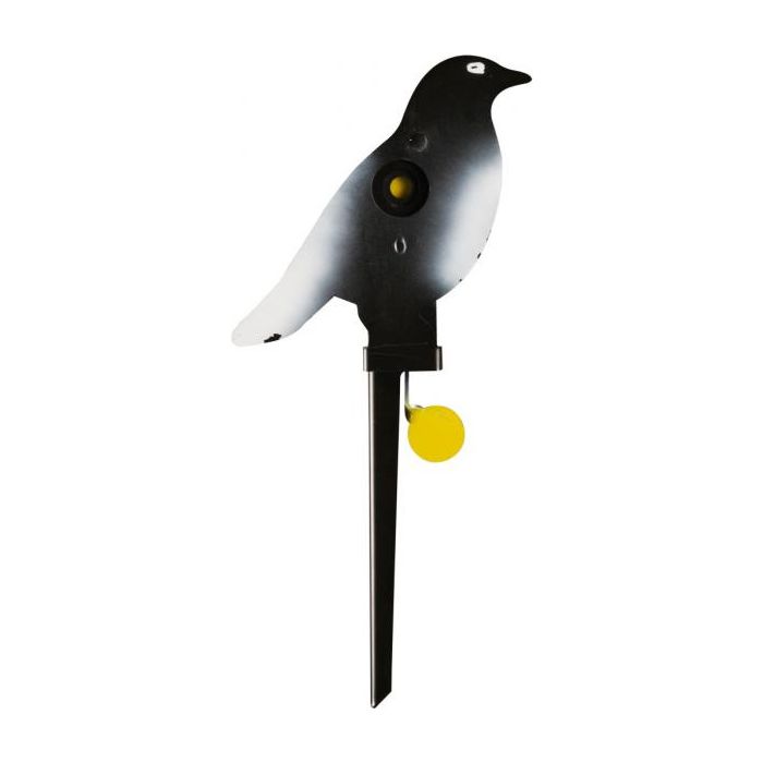 Ținta de antrenament Umarex Pigeon este potrivită pentru toată lumea pentru distracție și antrenament. Este fabricat din oțel cu o gaură rotundă în zona pieptului. Acest orificiu este variabil și poate fi redus manual de la 40mm la 15mm diametru. Ținta este fixată în sol cu un țăruș metalic de 30cm. Scopul este de a lovi centrul țintei. La impact, ținta cade, iar pentru a o recupera trebuie să loviți placa de întoarcere.