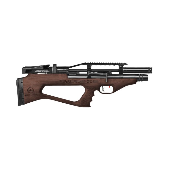 Kral Arms Puncher Empire XS este o pușcă cu aer comprimat PCP puternică într-o configurație bullpup cu o frumoasă crosă din nuc turcesc de înaltă calitate, cu o bucată de obraz reglabilă și o placă de fund reglabilă pe înălțime, care absoarbe șocurile. Mânerul de pistol cu formă ergonomică oferă o prindere stabilă și confortabilă. Atât declanșatorul primei, cât și al celei de-a doua trepte sunt reglabile și există chiar și o apăsare reglabilă a trăgaciului. Siguranța manuală poate fi (de)activată cu un deget pe trăgaci. Pentru a facilita montarea unui lunetă sau a unui speed sight, Kral Arms Puncher Empire XS are o șină Picatinny care poate fi reglată în unghi cu ajutorul unui sistem elegant.