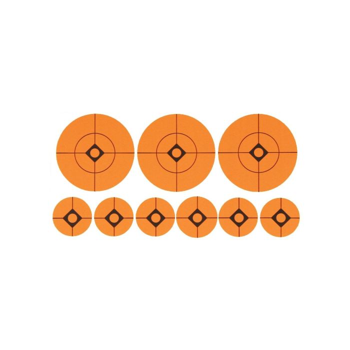 Jack Pyke 1" и 2" самозалепващи се стикери за мишена с диаметър 25mm и 50mm. Предлагат се в комплект от 10 листа в опаковка, всеки с по 3 стикера на лист с диаметър 50mm и 6 стикера на лист с диаметър 25mm (общо 90).