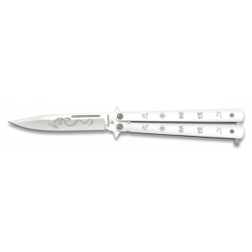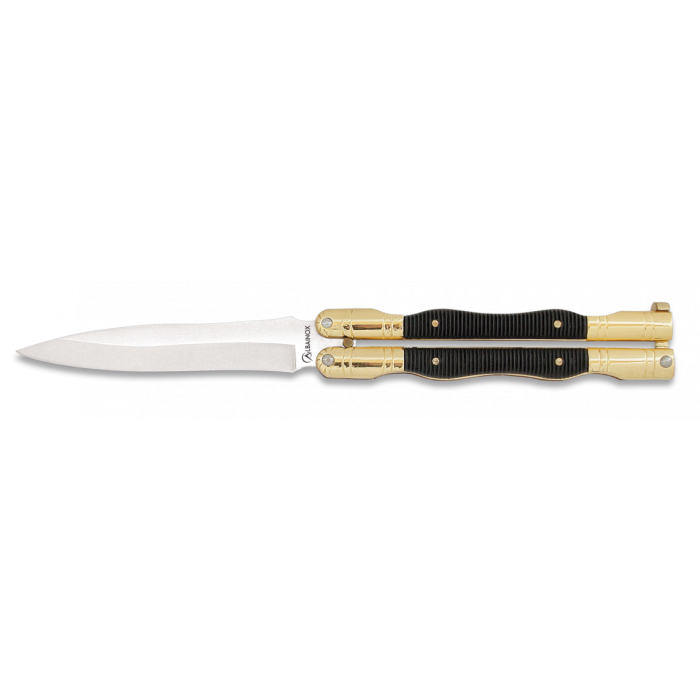 Сгъваем джобен нож тип пеперуда от испанската фирма Мартинез Алабаинокс. Ножът е от серията Abanico, модел 02051-D, като острието му е едностранно заточено с копиевидна форма, изработено от висококачествена нераждаема стомана. Ръкохватката е изискана, с удобен захват, изработена от Zamak и ABS гумиран полимер, като в края си има фиксираща пластина. Благодарение на гумираният ABS, ръкохвтката не се хлъзка в ръцете, което осигурява сигурност при употреба. Ножът е подходящ за ежедневна употреба.