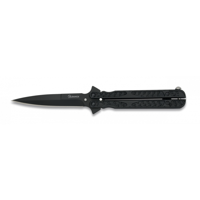 Сгъваем джобен нож тип пеперуда, модел 02092 от испанската фирма Martinez Albainox. Ножът е с острие произведено от неръждаема стомана и черно покритие, заточено едностранно. Ръкохватката е изработена от алуминий, подобрена с фини релефни декорации, които й придават забележителна елегантност.
