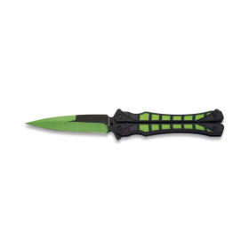 Сгъваем нож тип пеперуда модел 02115 Masonica на испанската марка Martinez Albainox. Ножът е с едностранно заточено острие тип меч, произведено от неръждаема стомана с марка 3Cr13Mov със синьо покритие. Ръкохватката е с удобен захват, изработена от алуминий, като в края си има фиксираща пластина. Ножът е подходящ за ежедневна употреба.